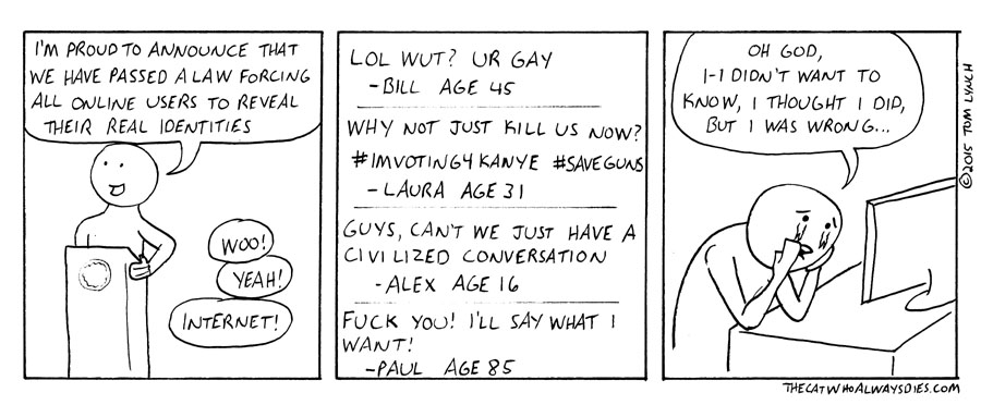 it's something that's already come to pass with people posting the dumbest hateful shit using their public facebook account, but I don't think we're ready for this futureI always wonder how old people are when I see dumb comments