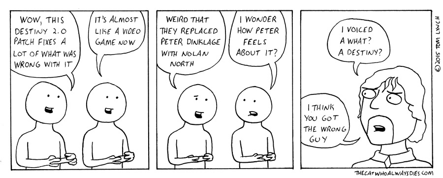 so Peter Dinklage has been completely wiped from DestinyI never thought he was bad, but Nolan North is certainly better