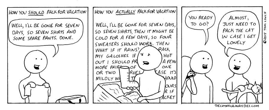 as someone packing for a vacation, I'm way more like the second dudeI'm even worse when it comes to in-flight entertainment