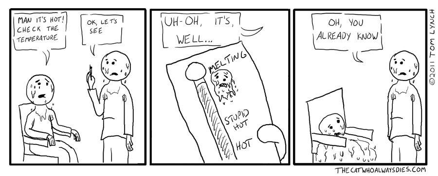 i'm working ahead, so this comic might be a bit late, but DAMN!this heat is ca-ray-zay