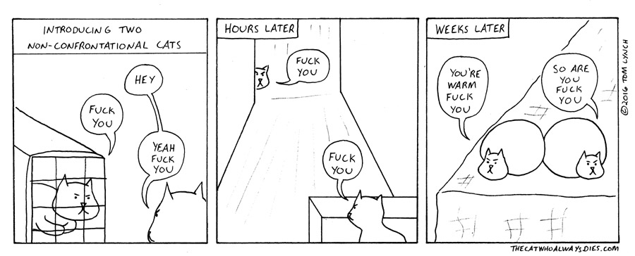my girlfriend and I finally decided to introduce our catsit turns out they're both very non-confrontational
