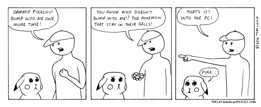 but for now, he'll just keep bumping into me on my way to the next Pokemon Gym