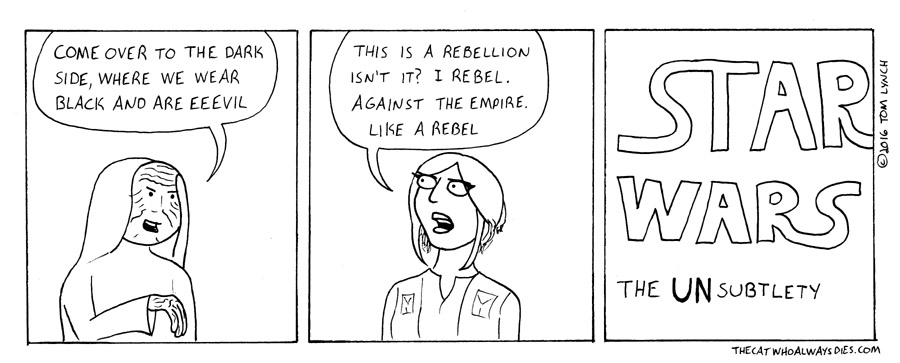 but I think we can all agree that star wars as a whole is about as subtle as a kick to the groin