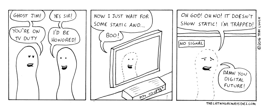 as I was writing this comic, I remembered they make a Poltergeist Remake(2015)I assume they had to drop the TV scene because how would you do it without static on the screen?