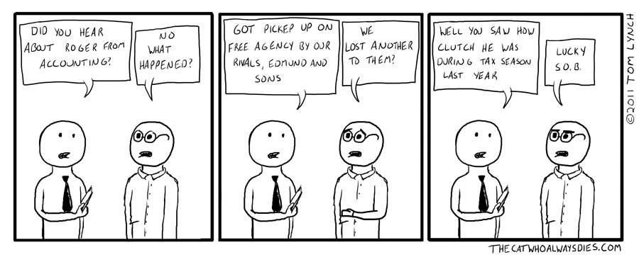 i like to imagine what the world would be like if corporate hirings were handled like the sports worldsomeone could be mired in free agency while the union works out an agreement with the league